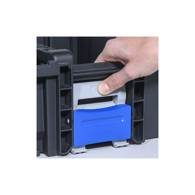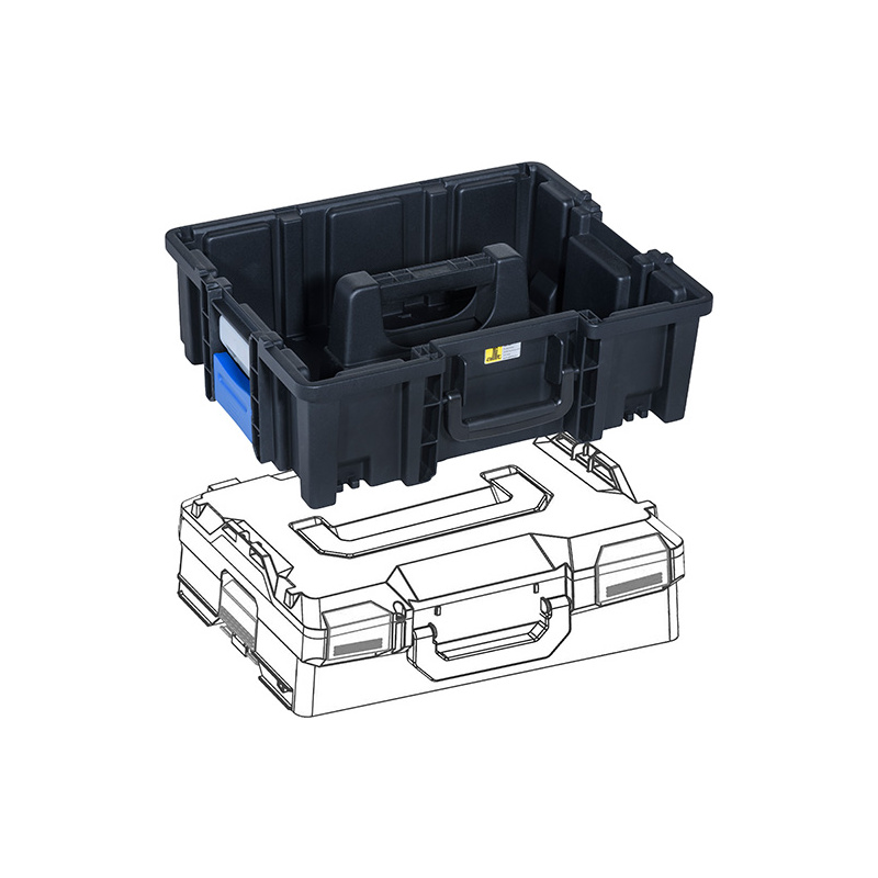 Universeller Helfer mit Adapterfunktion zum Aufbewahren und Transportieren für Werkstatt, Lager und Betrieb. Der Profi-Tragekasten kann mit Einsatzboxen individualisiert und durch Verbindungsverschlüsse sicher mit EuroPlus Pro ›K‹ 44 Kleinteilekoffern und anderen Koffersystemen verbunden werden.